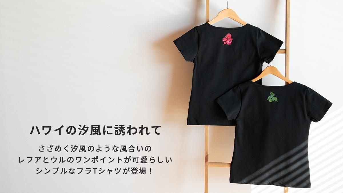 半袖 黒色 袖プリント フラTシャツ レフアshiokaze柄
