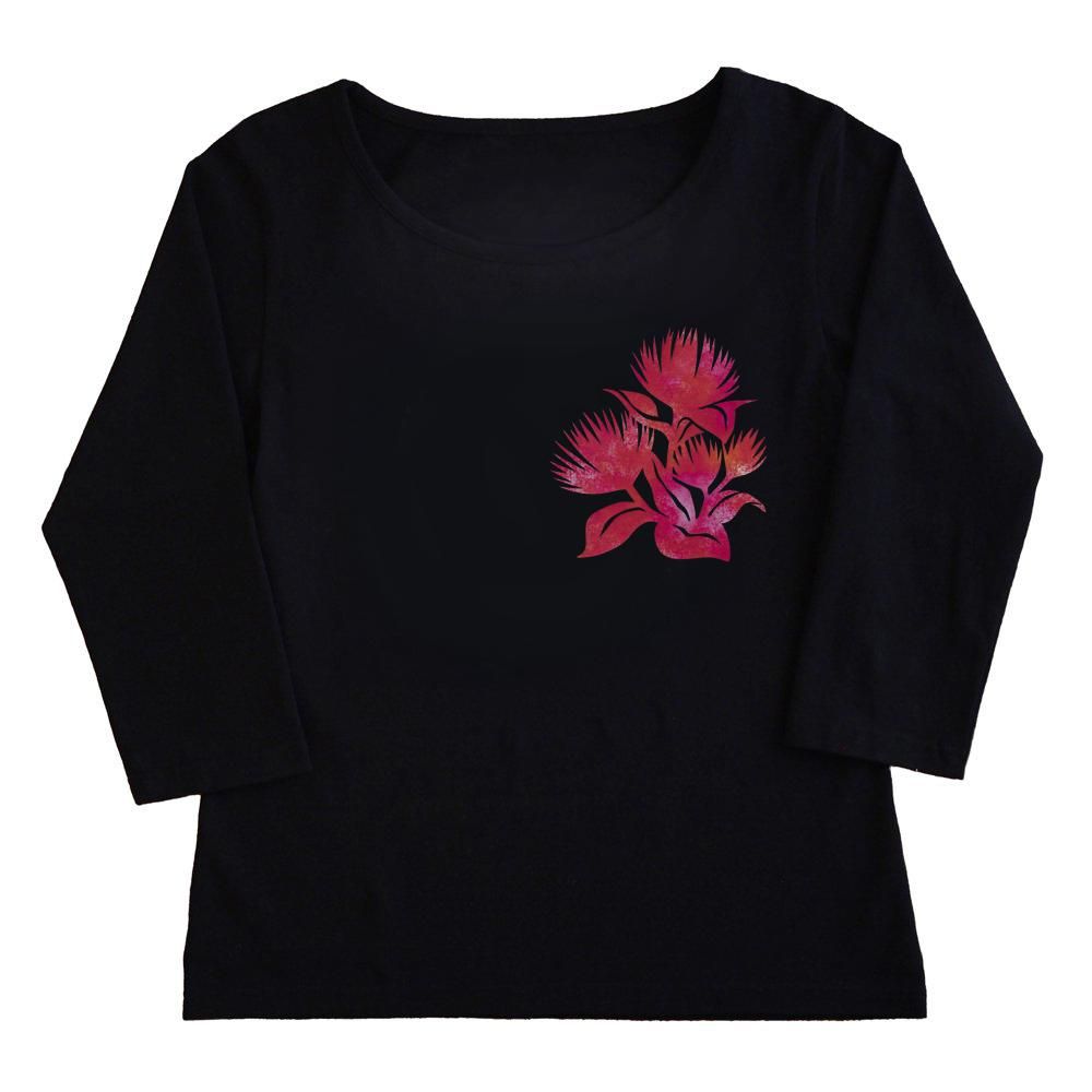 七分袖 黒色 フラTシャツ レフアshiokaze柄